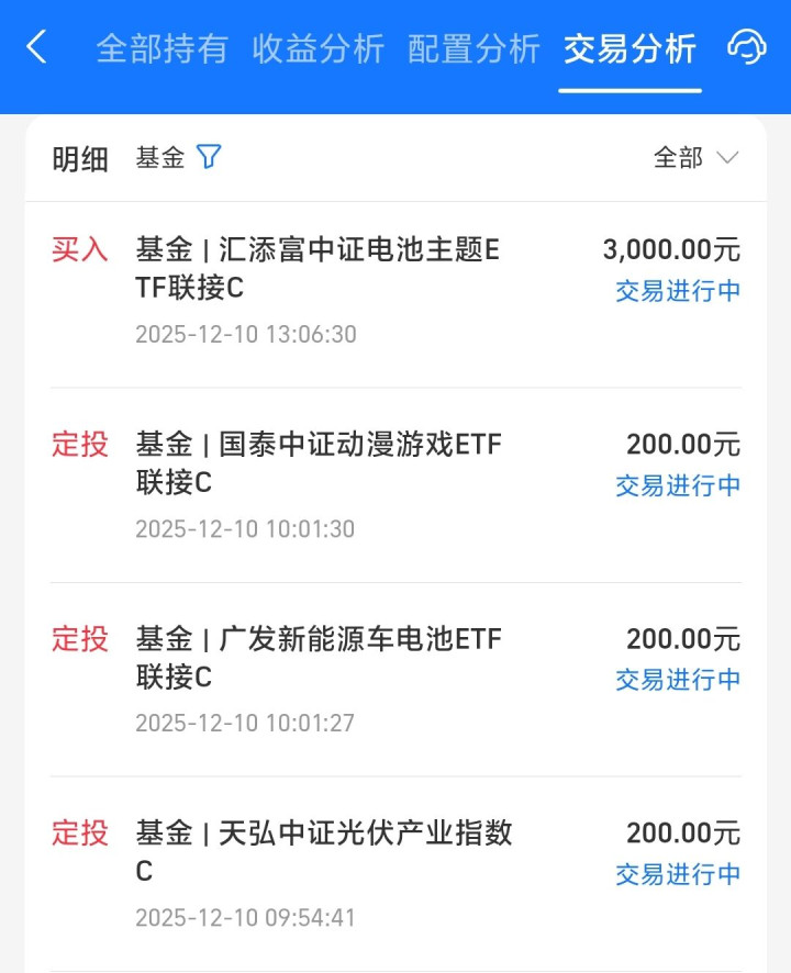 1.买入3000元$汇添富中证电池主题ETF联接C$